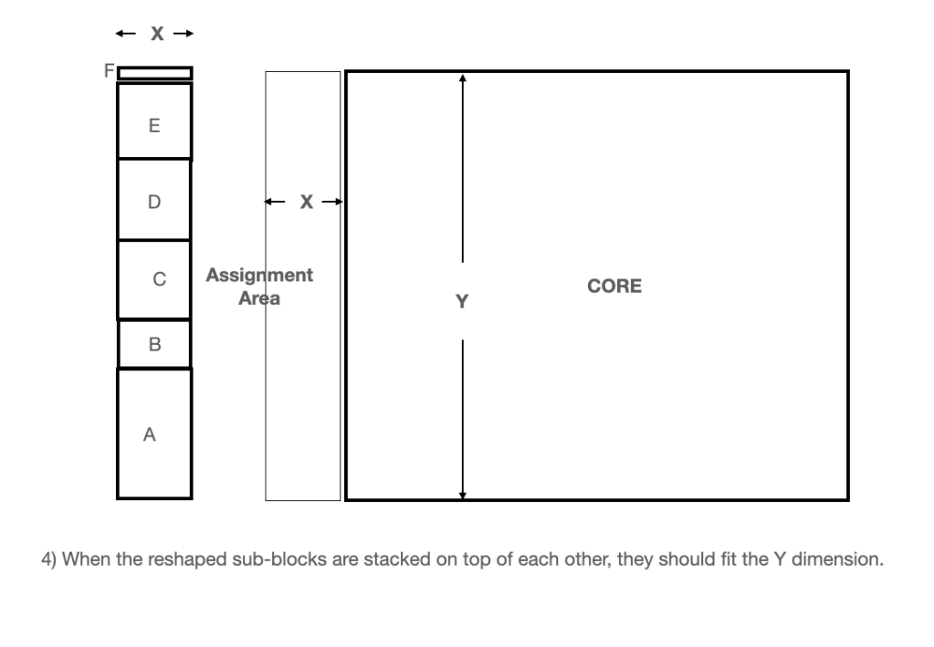 See the reshaped sub-blocks below and the adjusted X dimension based on the calculation in Illustration 2: