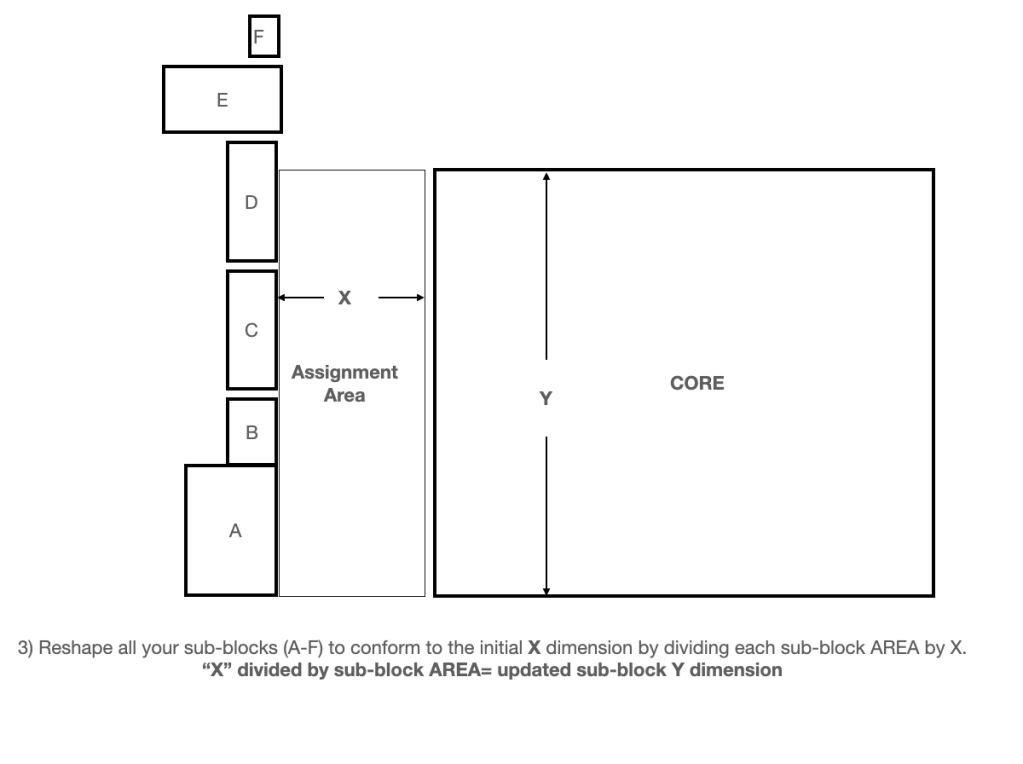 At this point you will have your initial targets for each sub-block for both X and Y dimension and all the sub-blocks should stack neatly into your assigned space.